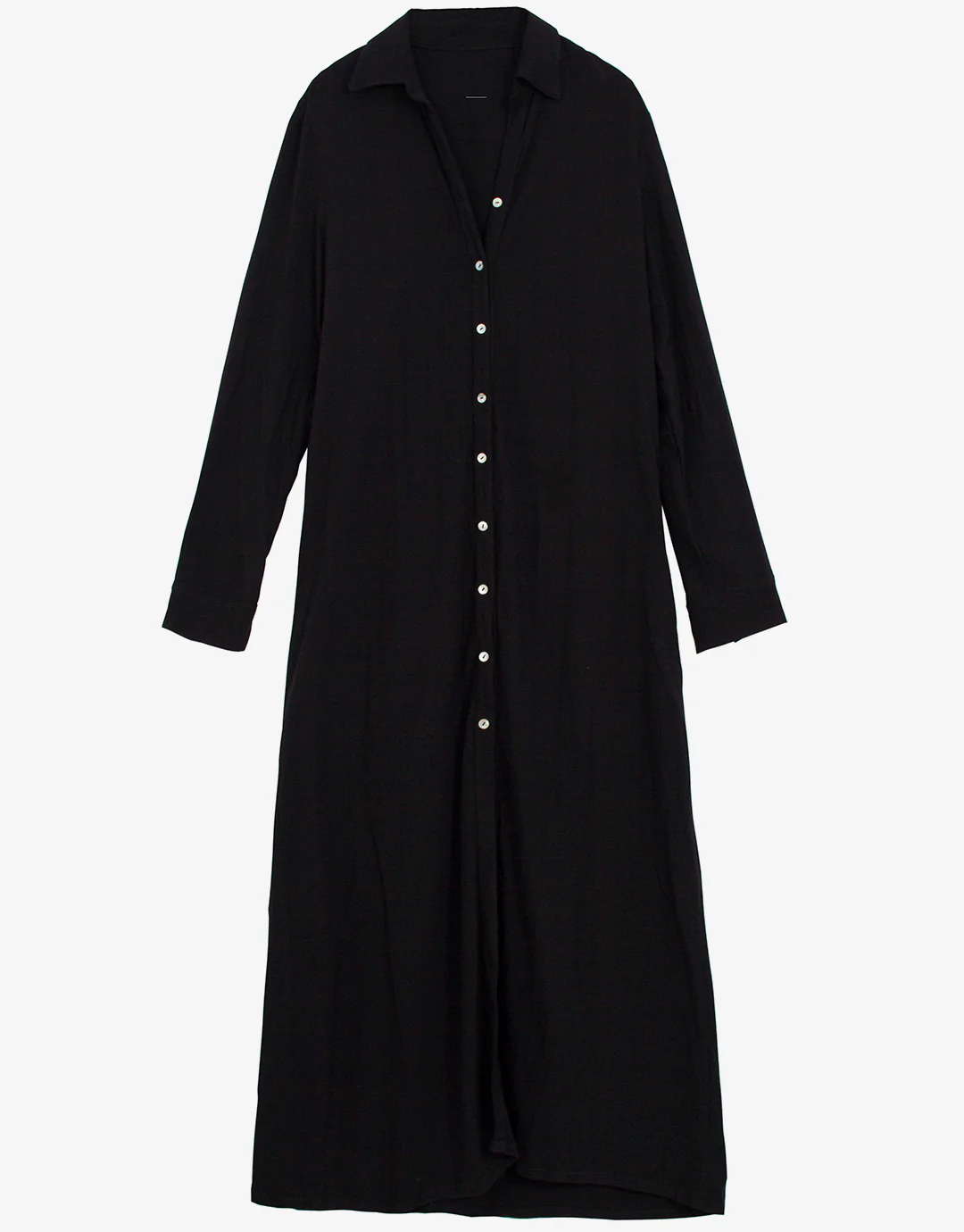 The Bille button-up maxi shirt from PQ Swim in black is a great maxi-length beach shirt with a collar, long sleeves and buttons at the front.